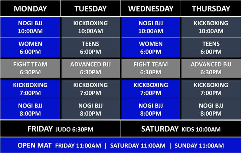 We specialize in Mixed Martial Arts (MMA), Brazilian Jiu-Jitsu (BJJ), and Kickboxing, offering classes for kids, teens, women-only, and adults. Our programs are safe and effective for both beginners and experienced athletes. We also offer private lessons and specialized seminars.